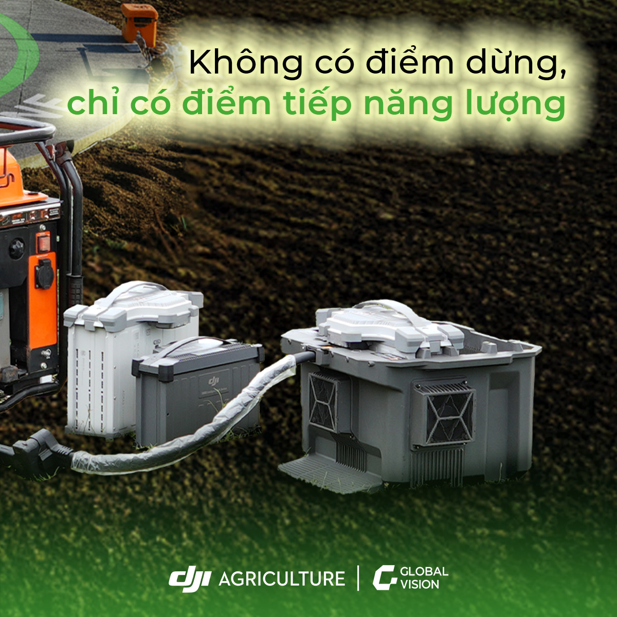 Hệ thống pin và trạm sạc thông minh cho phép drone nông nghiệp DJI vận hành không gián đoạn.