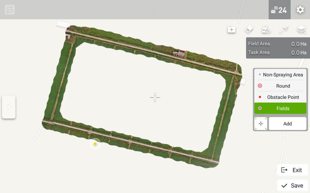 Thích hợp cho các cánh đồng không có chướng ngại vật ở giữa. Cho phép vạch ranh giới cánh đồng nhanh chóng và khảo sát trên không hiệu quả[2].